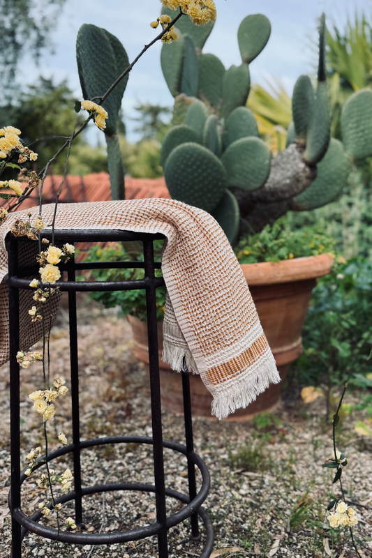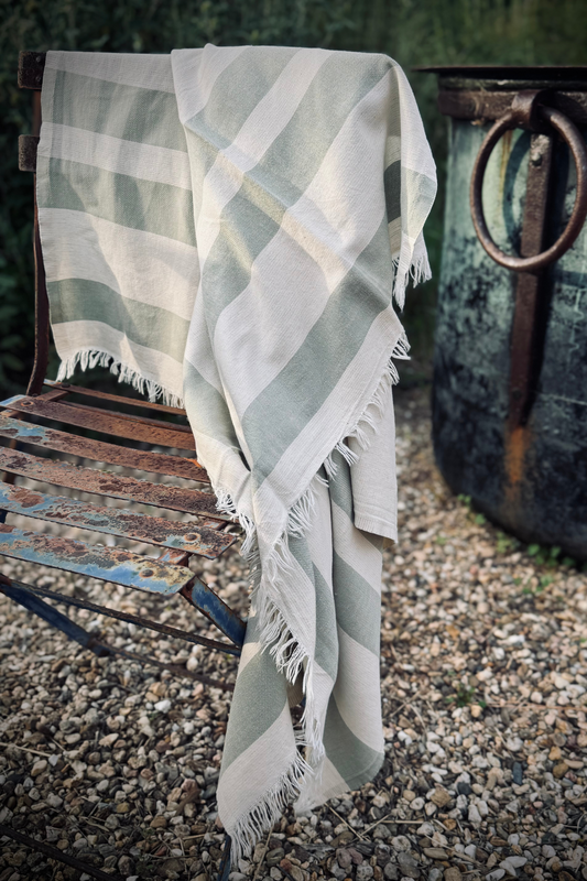TELO SALVIA: lino e cotone dei toni caldi con linee color salvia